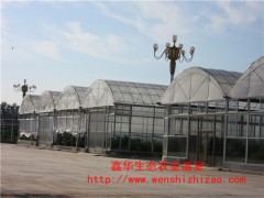 薄膜連棟溫室有單層薄連棟溫室和雙層充氣膜溫室,單層膜連棟溫室主要以單層塑料和為覆蓋材料,有拱頂和尖頂兩種。單層膜連棟溫室采用熱鍍鋅鋼骨架結構裝配,防腐防銹,溫室內部操作空間大,便于機械化作業,而且溫室采光面積大,新膜透光率可以達到95%。由于是單層薄膜覆蓋,所以保溫冬季保溫性能相對較差,北方地區冬季運行成本太高。但單層膜連棟溫室造價低,冬季在南方地區適當補溫就可以四季使用。