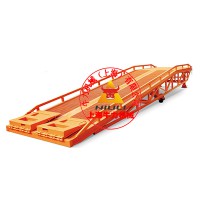 移動式液壓登車橋全液壓驅動,操作方便運行可靠。唇板與平臺采用整長軸連接,強度高、可靠好。采用進口密封件,保障液壓系統具有優良的密封性能。采用進口整體模塊式液壓站,密封性好,使用壽命長。高強度“U”形梁設計能保障其高負載長時間運行不變形。采用防滑花紋鋼板,使平臺有良好的防滑性能兩側設防軋腳裙板,防止腳趾伸入平臺造成意外傷害。設有保障維護人員進入登車橋內部維護時的支撐桿