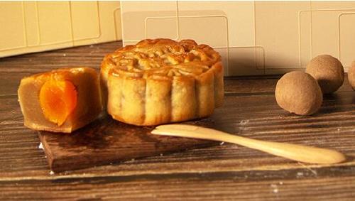 2.將包好的月餅?zāi)蟪蓤A柱形,再用模具壓好。