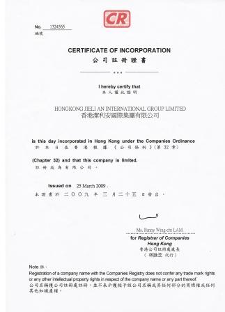 香港注冊證