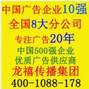 龍禧傳播集團是中國領先的廣告服務商。全國8大分公司,主營:全國電視與電臺投放、戶外廣告發布(高鐵、機場、高速大牌、樓宇電梯、影院媒體、社區媒體、公交、地鐵、城市大屏廣告等等)、創意設計、數字網絡營銷、影視制作、明星代言、展覽展示、活動管理等等。公司持續服務于約1500個國內外領先客戶,其中500強企業近百個。集團并在北京、上海、廣州、浙江、江蘇、深圳、安徽、湖南、成都、西安都設有分公司。