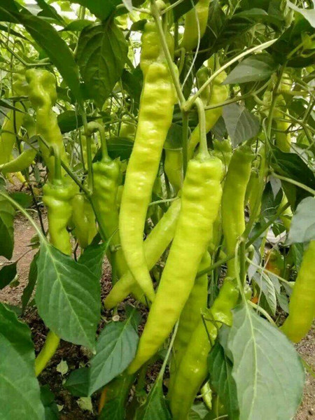 一代辣椒最新品種,在傳統大果型辣椒基礎上推出的更耐低溫品種,果實中大果型,順直,無褶皺,果肩4.5-5.5cm,果長30cm,前后期果實大小均勻,辣味中等,肉厚,耐貯存,豐產潛力巨大,是保護地種植首選,目前春秋保護地都有種植區參觀。