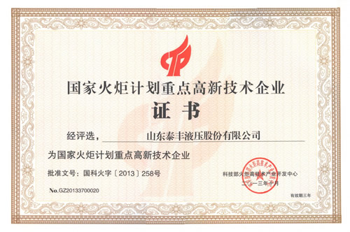 泰豐股份被認定為2013年國家火炬計劃重點高新技術企業時間:2013年12月23日