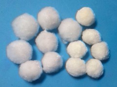 纖維球濾料的性能本產品選用高醛化維呢綸,定型滌綸絲為原料。用自身表面所沾附的大量生物團與充氧,污水反復接觸,使廢水中的懸浮物及有機物降解而達到處理目的。