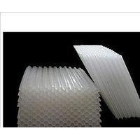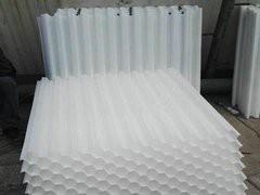 蜂窩斜管又稱(六角形蜂窩斜管填料)從材質上分為聚丙烯、乙丙共聚、聚氯乙烯、玻璃鋼四種。 蜂窩斜管采用改性乙丙共聚塑料為材料,紅外線恒溫機械熱拉成六角管狀,然后采用專利技術,高頻焊接 成一個整體,再進行安裝。