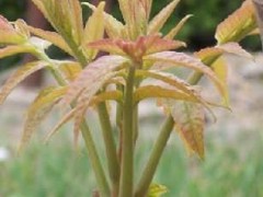這期特別推薦的紅油6號香椿是專業香椿基地選育的菜用、材用兼用品種,芽苞初放時為鮮棕紅色,5-7天后逐漸轉為鮮紫色油亮有光澤,肥嫩,芽苞開放后8-12天長成商品芽菜,香味濃郁,纖維少,是香椿高產優質品種。采用簡單高效的矮化短枝栽培技術,每畝需種植3000株左右(行株距60x35厘米),如采用大棚和日光溫室矮化栽培,每畝種植6000株。全套技術資料100元。為了使更多的讀者成規模的種植紅油香椿,我們和香椿基地聯合推出種子和種苗,價格優惠。
