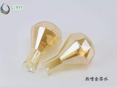 金茶水外觀呈深褐色的液體,使用時噴槍噴到520℃-580℃度的玻璃工藝件上表面,瞬間即形成金黃色的薄膜,慢慢退火,就成了一件金茶色的玻璃制品了。金茶水這種彩色膜與釉結合牢固、結構致密,不易脫落,光亮如鏡,化學穩定性好。