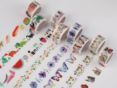 和紙膠帶又名印刷和紙膠帶,發源于日本又名日本和紙膠帶;英文名:Masking Tape.和紙膠帶的由來:古代中國所發明的“紙”通過高麗傳到了日本后,以日本獨特的原料已及國內無法完成的紙張處理-(防滲透及壓光處理)使紙張平滑而又柔軟具有半透明質感的制作方法產生了具有日本文化特色的紙張——【和紙】。近年來,在風靡全球日本MT的影響下引入我國,并且由商家與各大知名插畫師合作,創作了又一非常時尚的玩法(手帳)。