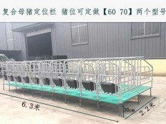 復合定位欄是由大架,前門,后門,復合板,鑄鐵腿,食槽,拉桿及配套螺絲組成。正常的是10個豬位一組,也可以根據豬舍的尺寸,五個一排,幾十個一排都可以。我們在發貨過程中,是發的散件,客戶直接安裝即可。