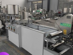 產(chǎn)品簡介:自動干豆腐機可生產(chǎn)不同地區(qū)所需要的豆腐皮、千張百葉、豆腐絲、素雞等產(chǎn)品,本機器是從老式豆腐皮機的前身上研發(fā)出的新型自動豆腐皮機,我們的機器更加智能化。國內(nèi)超短機械,只需1-2人即可生產(chǎn)豆腐皮,日曠可達1,能制出超薄型(0.2-0.5MM)的產(chǎn)品,并粗產(chǎn)品彈性大,高蛋白,低膽固醇,純綠色天然食品;寬窄厚薄均可調(diào)整、產(chǎn)品色澤一致,筋度好吃,口感良好。