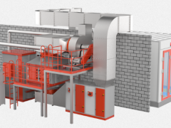催化燃燒裝置內設加熱室,啟動加熱裝置,進入內部循環,當熱氣源達到有機物的沸點時,有機物氣化從活性炭內揮發出來,進入催化室進行催化分解成水和二氧化碳,同時釋放出能量。其中一部分熱量通過氣、氣換熱方式對進入催化燃燒脫附廢氣預熱,另一部分能量再進入吸附床脫附,此時電加熱裝置基本停止工作,催化燃燒運轉熱能依靠有機物廢氣燃燒釋放熱維持,此狀態循環進行,直到有機物完全從活性炭內部分離、分解。活性炭得到了再生,有機物分解成無害物排放。