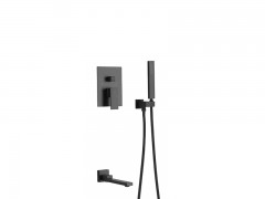 蜂虎鳥 黑色冷熱水暗裝埋墻式花灑隱藏嵌入式淋浴套裝
