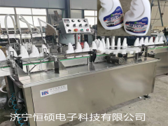 生產(chǎn)線由轉(zhuǎn)盤式自動理瓶機、直線式8頭灌裝旋蓋機、理瓶機有序地將瓶子傳送到輸送帶上,進入灌裝旋蓋機,通過電磁閥控制在輸送帶上對瓶子進行8頭灌裝,然后進入撥盤,再依次進行上蓋、旋蓋。完成旋蓋的瓶子通過輸送帶進入鋁箔封口機封口,再進入燈檢工位,燈檢好的瓶子再由輸送帶進入貼標機。