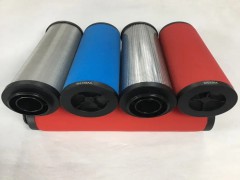 壓縮空氣中的污染物主要有兩種,一種是被吸入壓縮機的大氣污染物,其中80%直徑在2μm以下;另一種是壓縮機的帶出物,呈煙霧狀態,消散開來便成為0.01~0.8μm的氣溶膠。一般性質的濾芯可以除掉大部份液體和固體物質微粒,其粒徑一般大于1μm,而要除掉微小的固體粒子以及油水的氣溶膠,就必須采用精密濾芯。