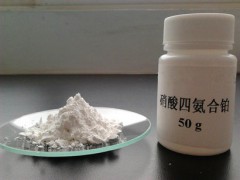 硝酸四氨合鉑,別名硝酸四氨鉑,四氨合硝酸鉑,白色晶體。鉑的四氨類家族中的一員,極易溶于水,不溶于乙醇、丙酮,在酸性條件下不穩(wěn)定,已經(jīng)絡合的氨會脫離出來,生成氯化銨,與四氯合鉑基團反應會生成馬格努斯綠色鹽。工業(yè)上有時用作鉑催化劑的前軀體。
