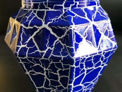 注 意:裂紋漆可以任意調配顏色。若要做出顏色反差較大的裂紋效果,先要做有色底漆,有色底漆要充分烤干,再噴光油層,噴完光油層只需稍微表干,不可太干,就可以噴裂紋漆,噴好放入窯爐烘烤。若需要裂紋大點,就可以噴厚一點,要細點就可以噴薄些。裂紋顏色要好看最好底漆、面漆的顏色反差大點,譬如,噴紅色裂紋漆,底漆可配白色和黑色。裂紋漆顏色可以調任意色。