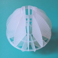 采用聚丙烯(PP)塑料制成球狀,由兩個(gè)半球合成一個(gè)球形,每個(gè)半球上根據(jù)設(shè)計(jì)需要有8-12個(gè)半扇形葉片,兩個(gè)半球的扇形葉片相互錯(cuò)開(kāi)。該填料特點(diǎn)是比表面積大,空隙率較高。但是由于葉片數(shù)偏多,彼此間有遮蔽效應(yīng),不利于液體分布和潤(rùn)濕;液體大多在球體空心柱聚集,阻礙氣體暢通,因此阻力較大。此種填料多用于廢氣處理和水處理工程